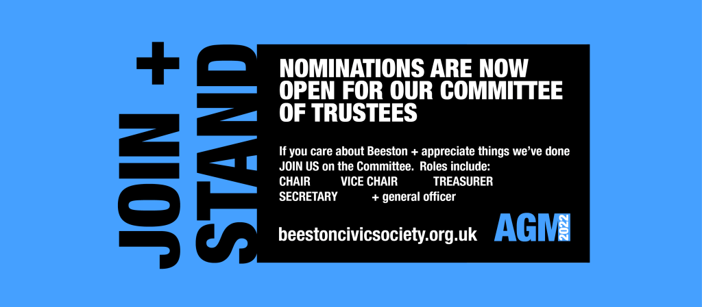 If you would like to become part of the team keeping Beeston Civic Society ticking over – either in an Executive role or as a general officer – you can now apply online.