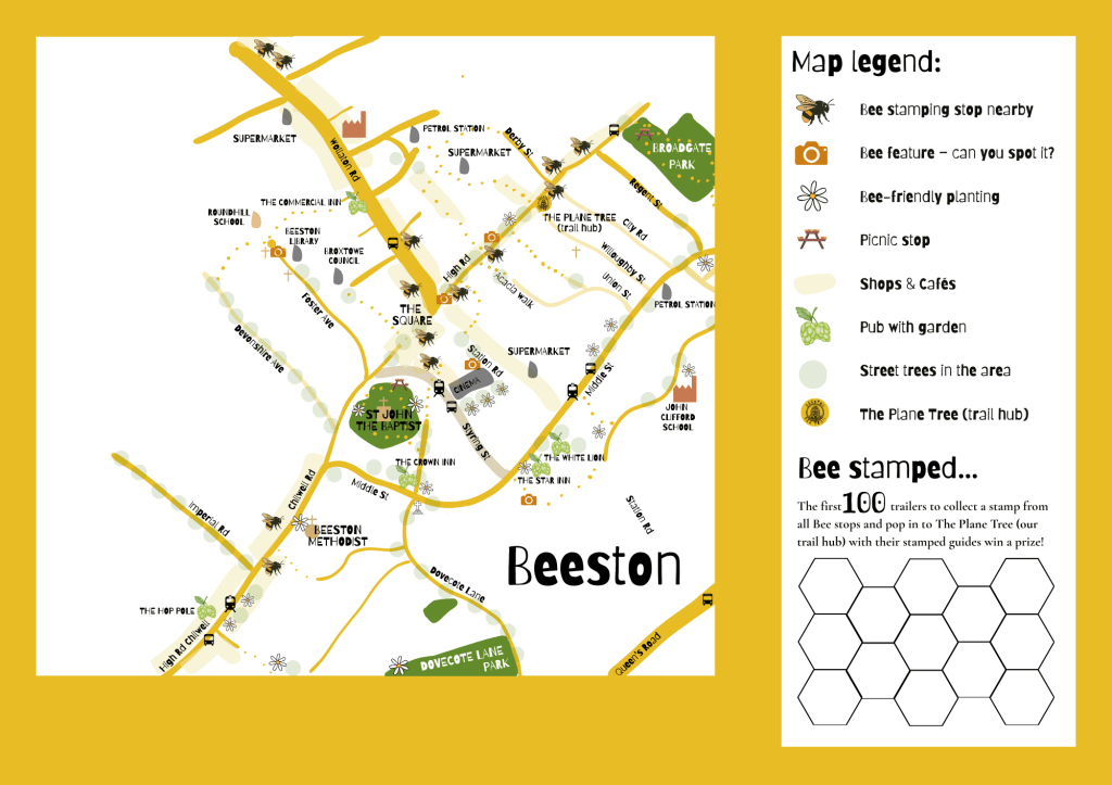 Follow the trail map and look out for 13 different native bee species on beautifully illustrated panels hidden around Beeston. From the bright Red Mason to the tiny Hairbell carpenter, each has its own story to tell. Keep your eyes peeled – can you find all of them? Collect a stamp as you go, supporting our local independent shops.