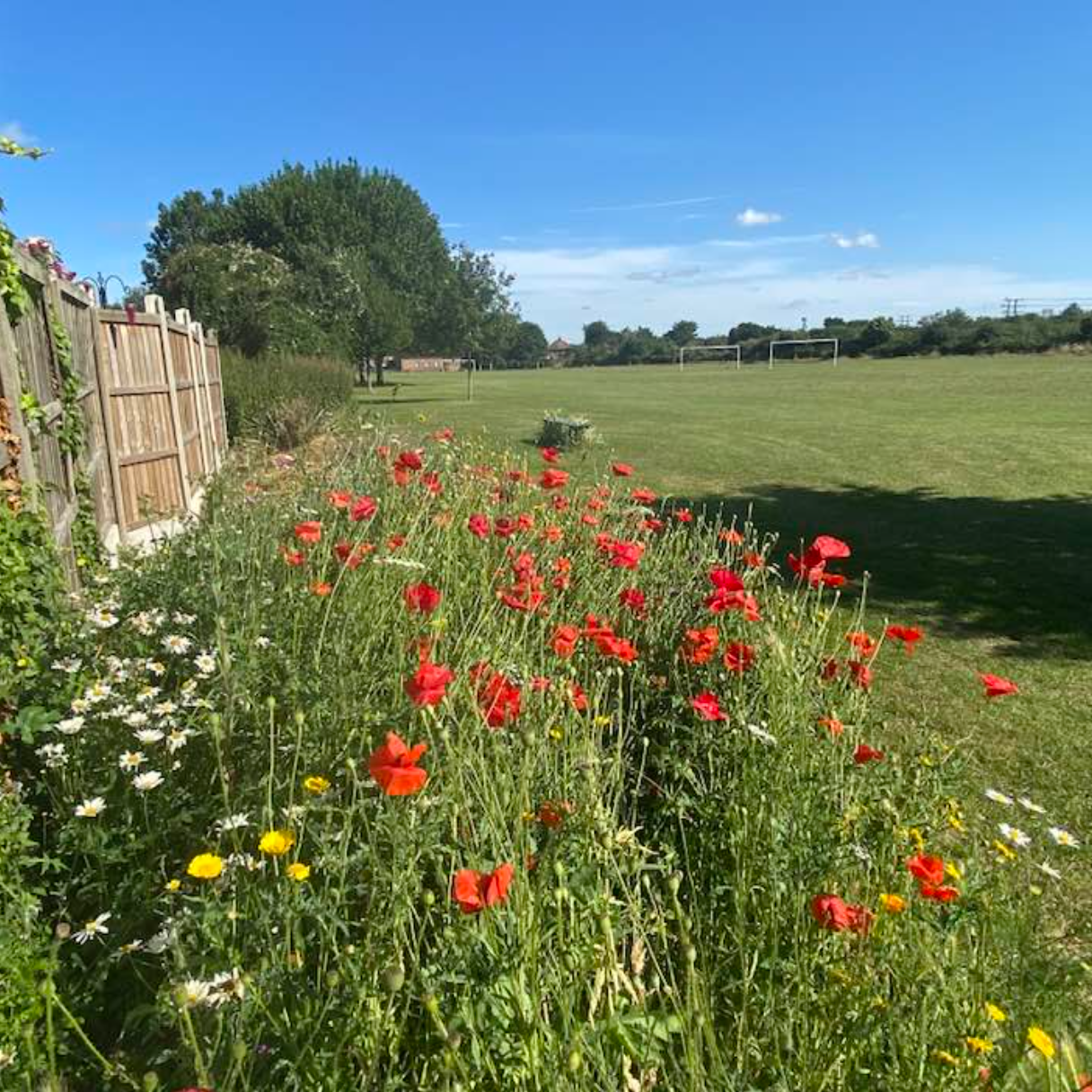 Enclosed front garden. Sunflowers.