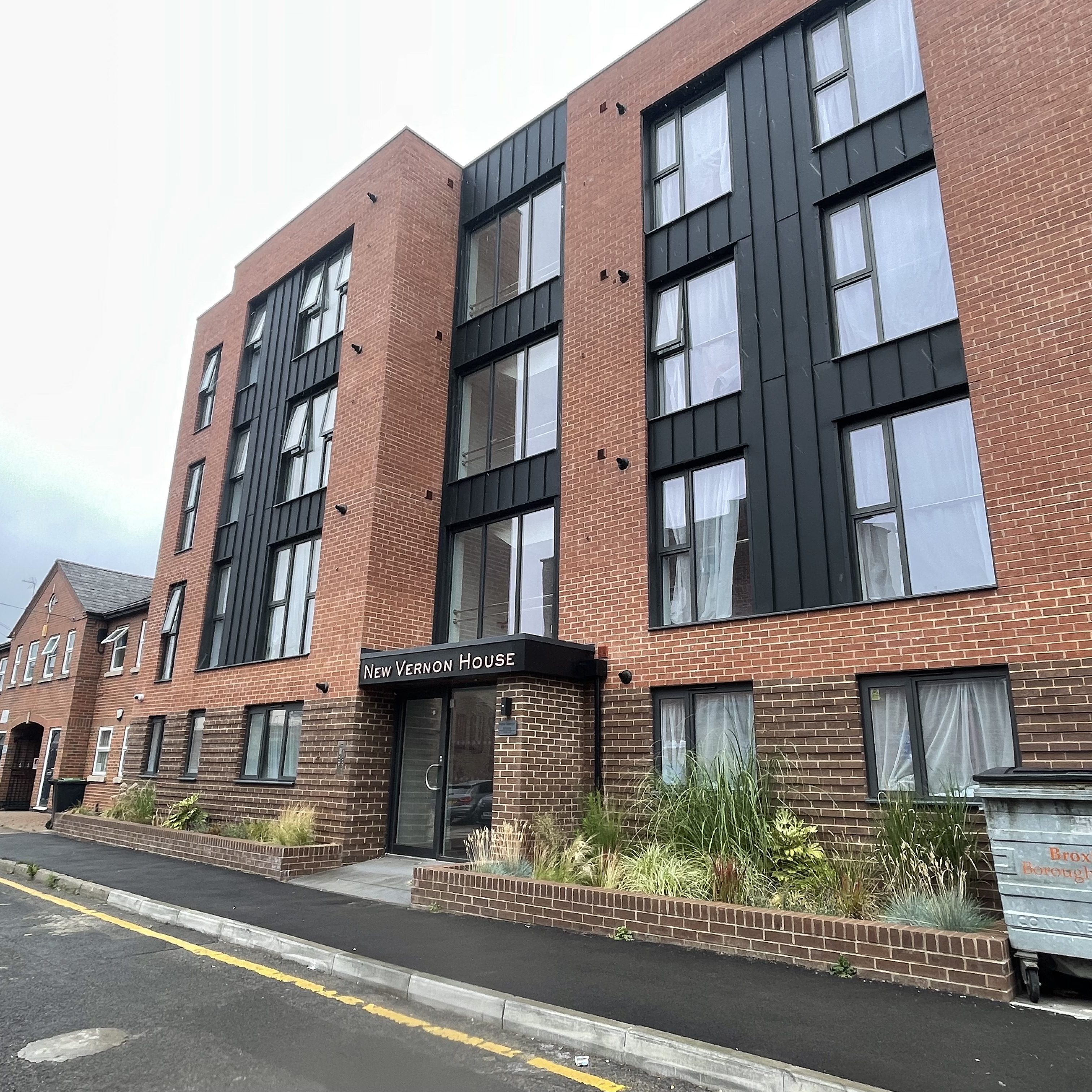 New build. 4 storey brick block of flats.